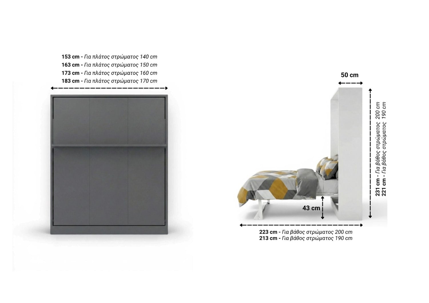 • Κατασκευάζουμε το πτυσσόμενο κρεβάτι Queen σε πολλές διαστάσεις